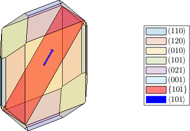 plotInnerDirection(cS,d,'faceColor','blue','arrowWidth',0.05,'DisplayName','\(\langle 101 \rangle\)')
